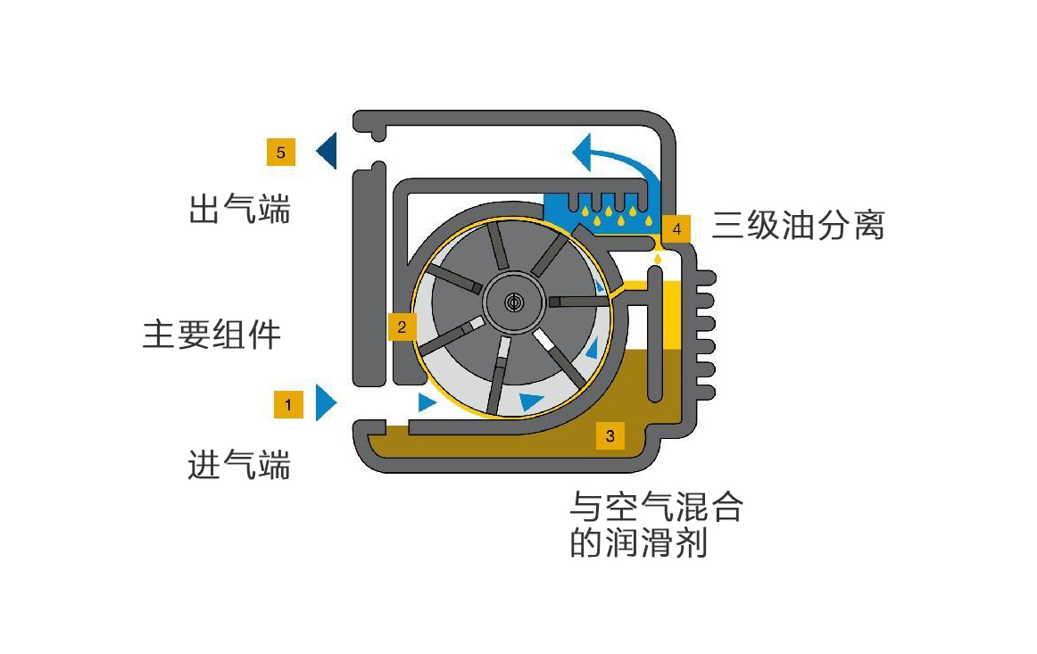 滑片式空压机是一种容积式旋转压缩机,由定子汽缸和转子组成,转子以离心式放置于定子中。转子上有对应的插槽,以便滑片在里面滑动离心力使它们在旋转时与定子的侧多保持接触。得益于其简单的结构,是式童蛋的真保客颗声的,这:墓急是其更多的气体容积产出,这主要因为在机器运行过程中滑片一直持续地与定子内壁在润滑油的作用下形成一个绝佳的密封空间,不会产生任何的气体泄漏。这种类型的空压机在运行中不会产生轴向推力,因此转子侧表面就不存在磨损,就不需要使用旋转轴承或者推力轴承。正是由于滑片空压机这种独特的设计方式和运行原理,其寿命几乎是无限长的。